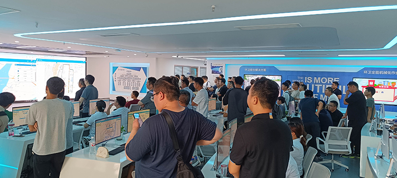 在工作人員的細致介紹下,大家深入了解了項目部自成立以來所取得的一系列豐碩成果,還知曉了環衛車物聯網平臺的相關情況,并現場觀看了環衛車如何借助物聯網控制實現高效作業,感受科技為環衛工作帶來的便捷與高效。