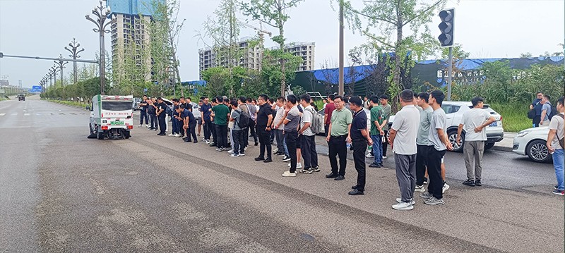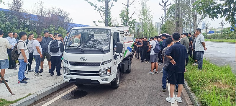操作人員現場演示車輛組合作業以及清掃效果,精彩的演示讓現場人員都受益匪淺。通過這次現場觀摩,全體人員對公司產品在實際環衛作業中的卓越性能與高效表現有了更為直觀且深刻的認識,也更加堅定了大家推廣公司產品、為公司發展貢獻力量的決心。