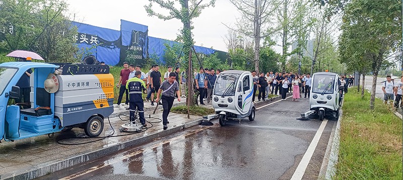 最后,大家一同前往車輛演示區域,現場觀摩新能源環衛車輛運營模式的展示。