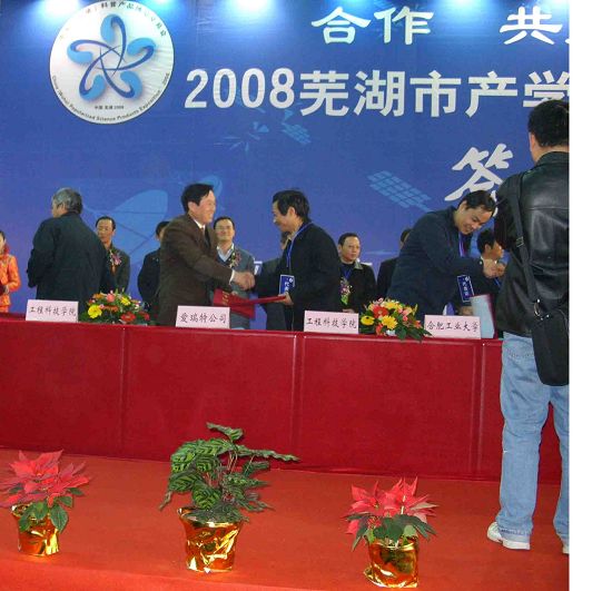 展會期間,愛瑞特公司與安徽工程科技學院進行了產學研技術合作的簽約。